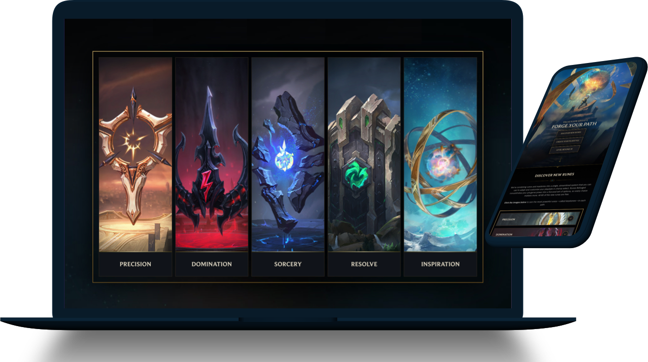 Every season, Riot Games releases some major upgrades to it's League of Legends game. For the 2020 season, they combined runes and masteries into a single, streamlined system that players could use to adapt and customize their playstyle. Runes Reforged concentrates players' pre-game power into a focused set of options, so every choice matters more. Haven Agency helped Riot educate its players on this new system via a specialized microsite experience.